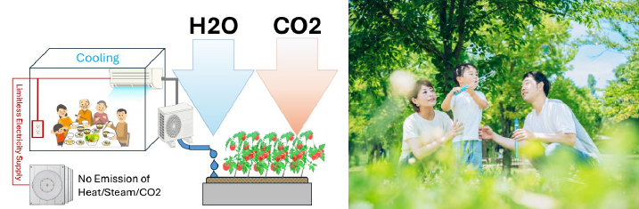 重力発電による電力でエアコンをフル稼働させる事で、常に快適な空間を作りながら温室効果ガスを吸収できる